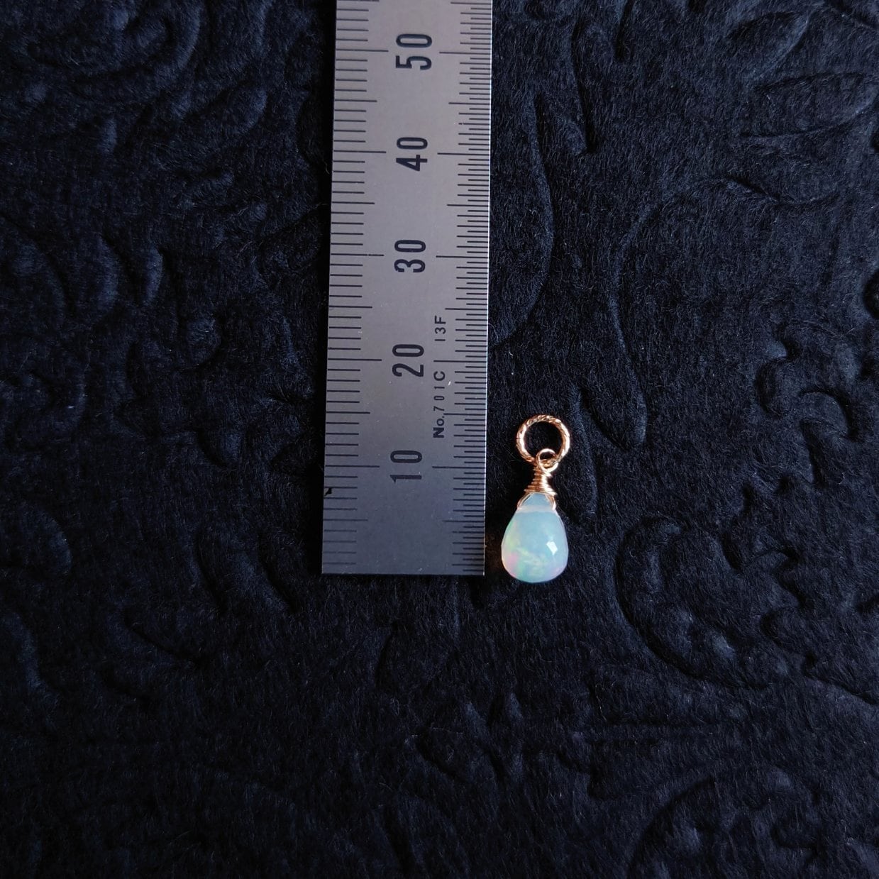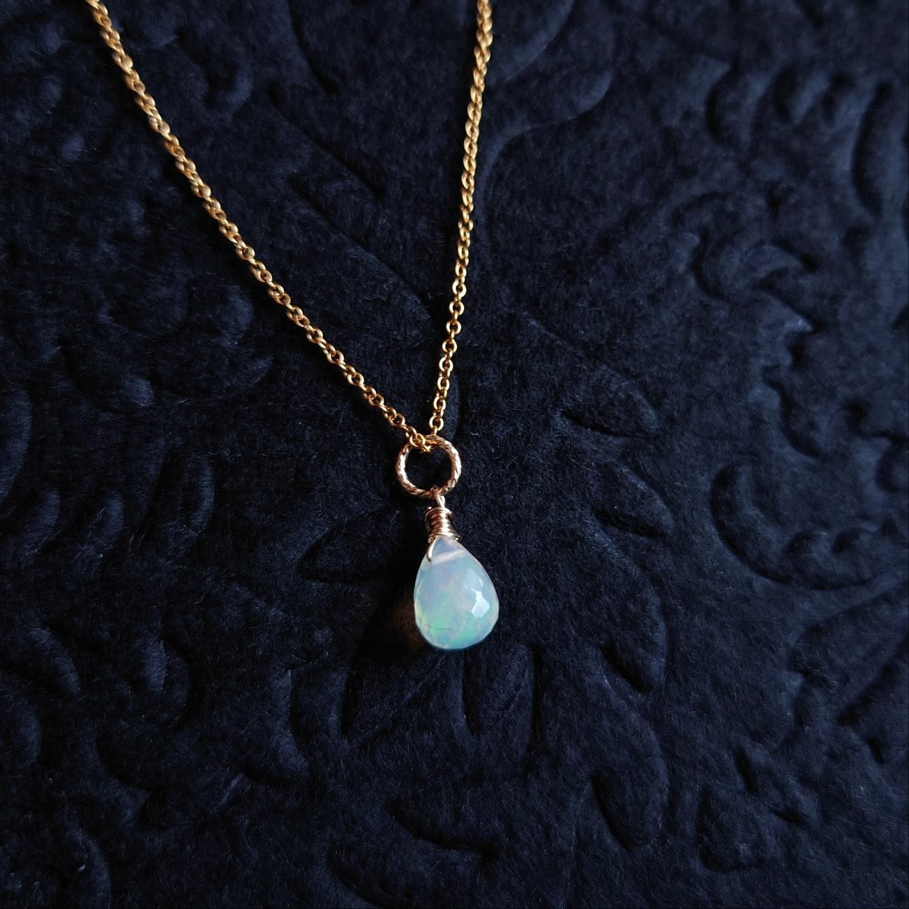 エチオピアンオパールは特有の遊色が美しく、光の加減でさまざまな色味を楽しむことができます。金属は14kgfを使用し、高級感あふれる仕上がりに。