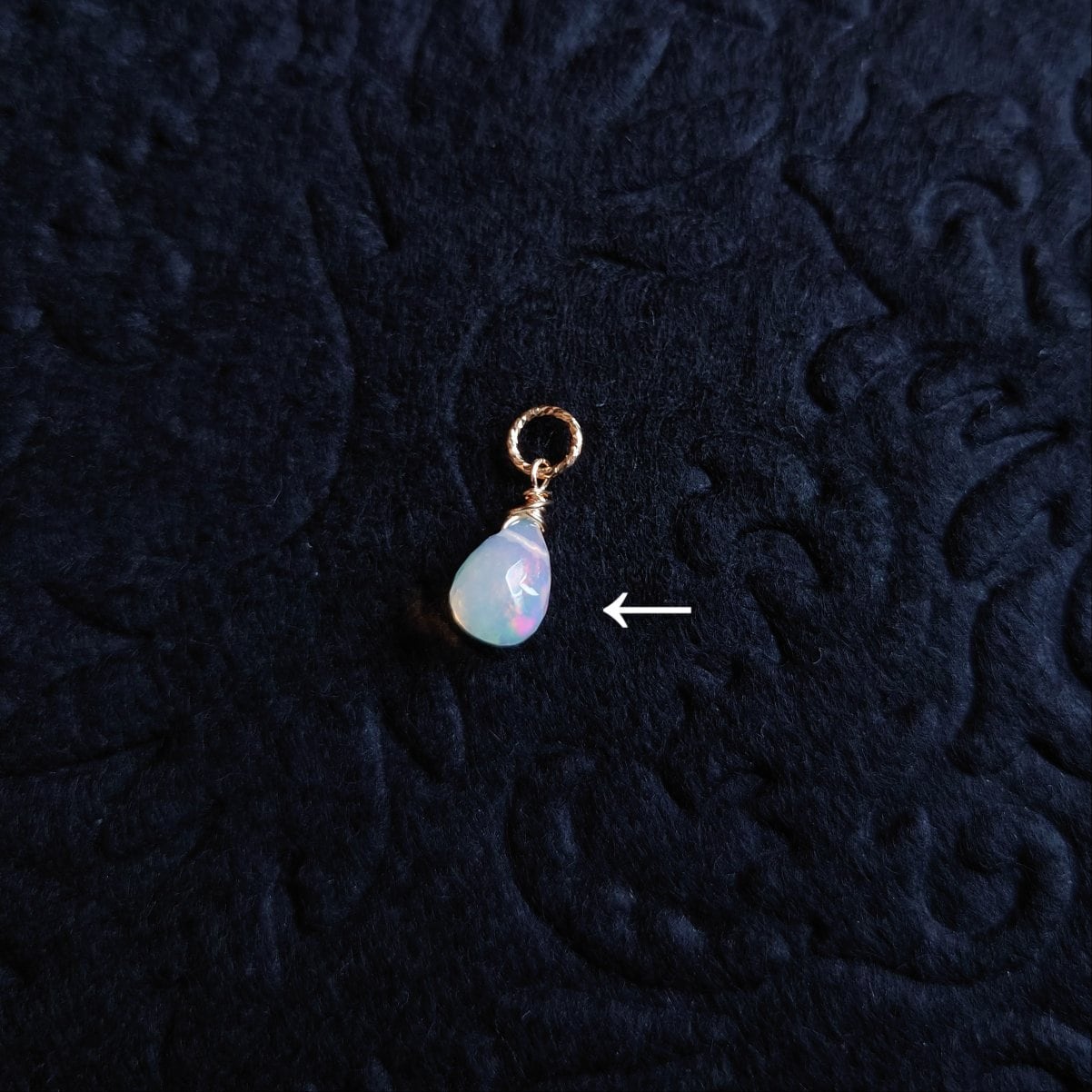 遊色の華やかな輝きに満ちた大粒のエチオピアンプレシャスオパールのひと粒ネックレスチャーム。