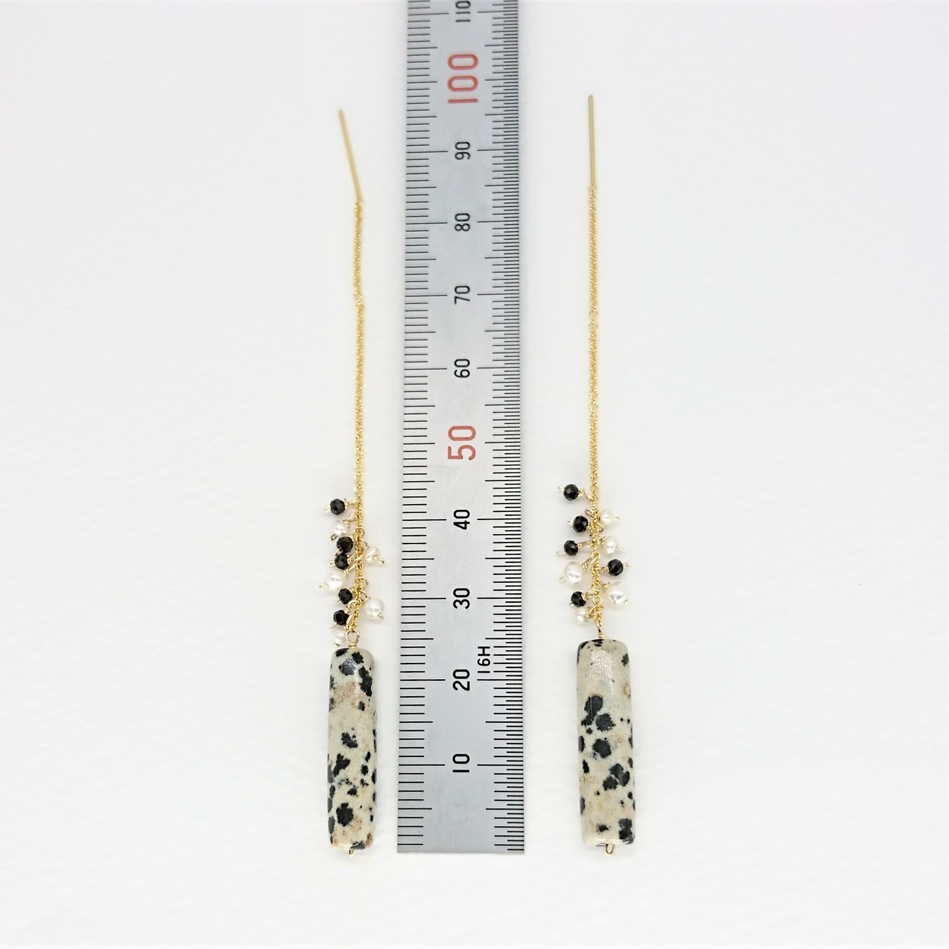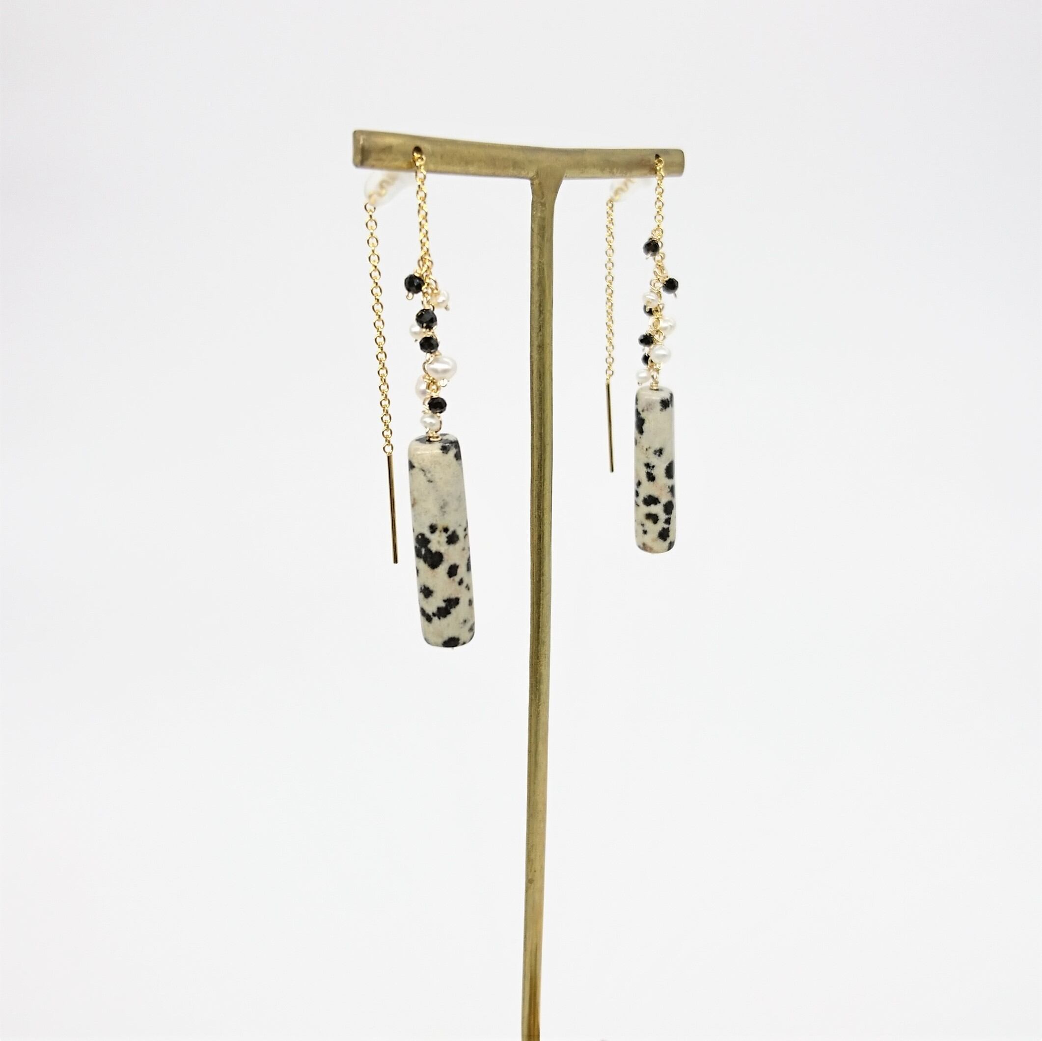 チューブカットのダルメシアンジャスパーがポイントのアメリカンピアス。