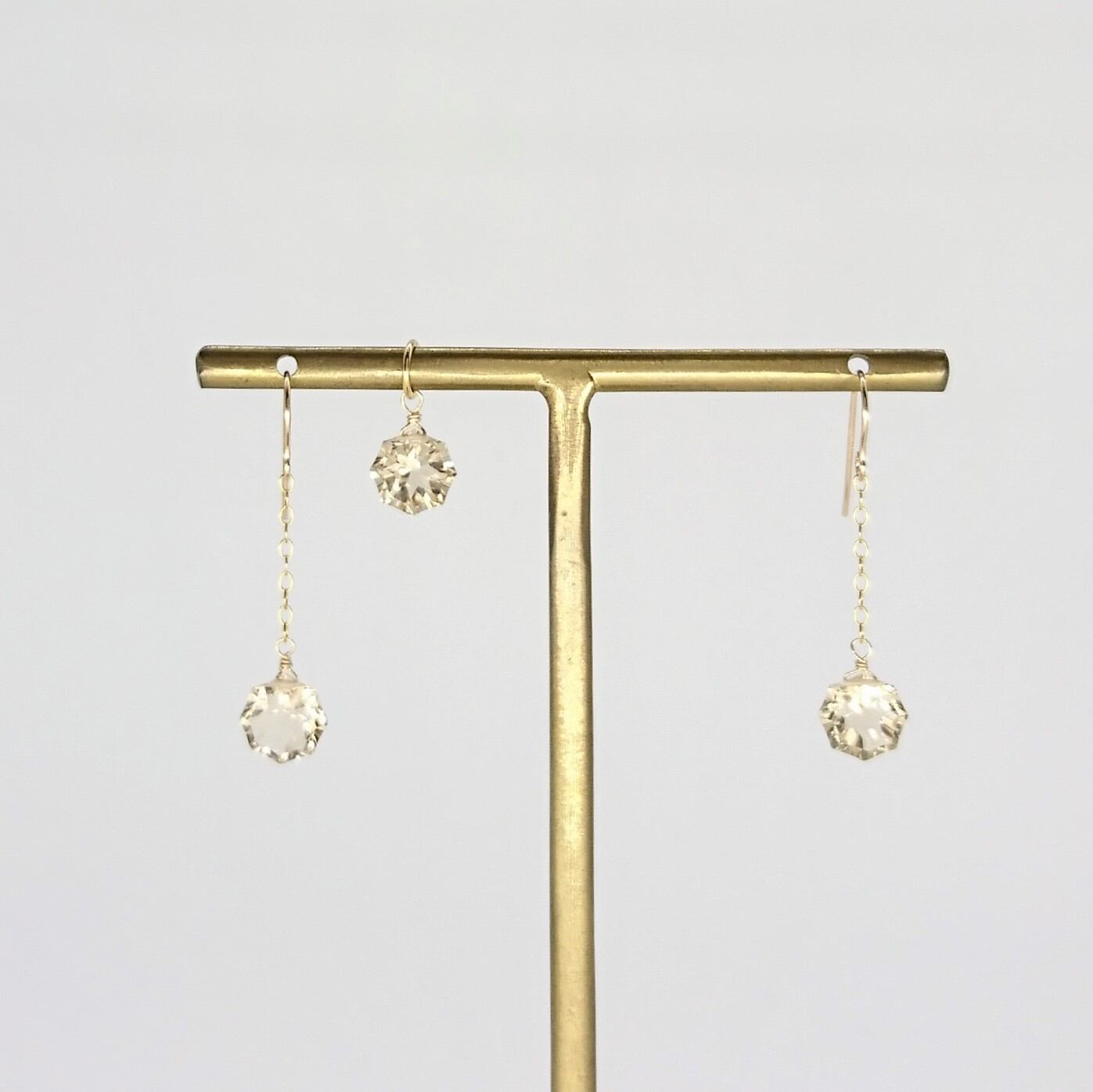 シャンパンクォーツひと粒チェーンピアス&トップセット