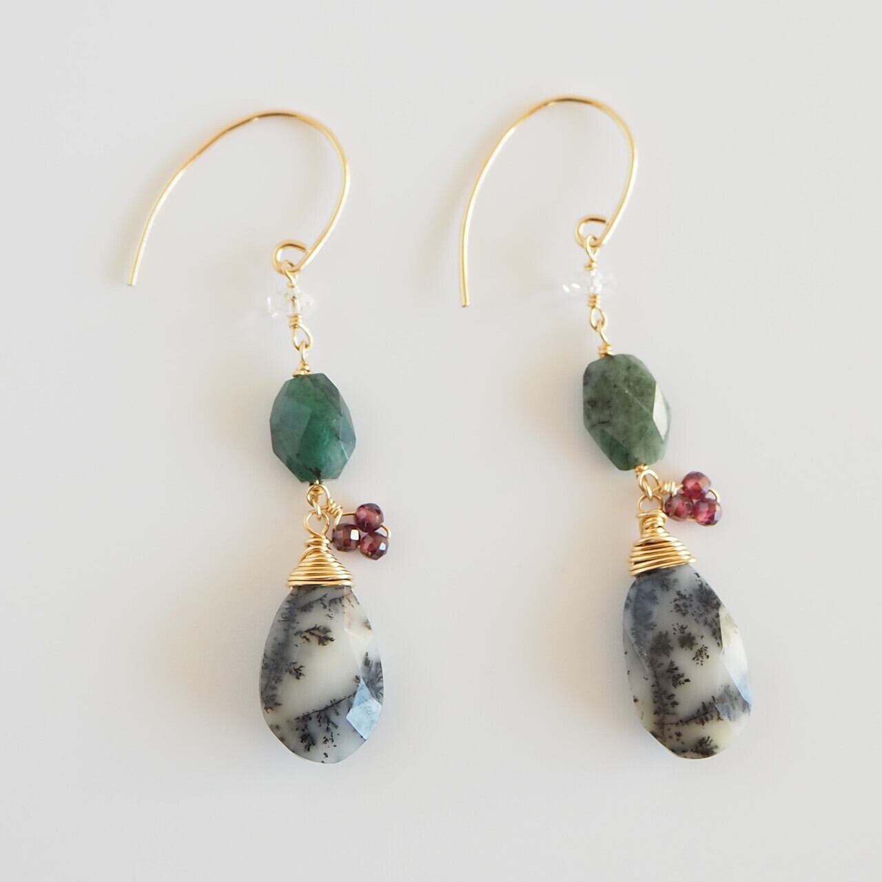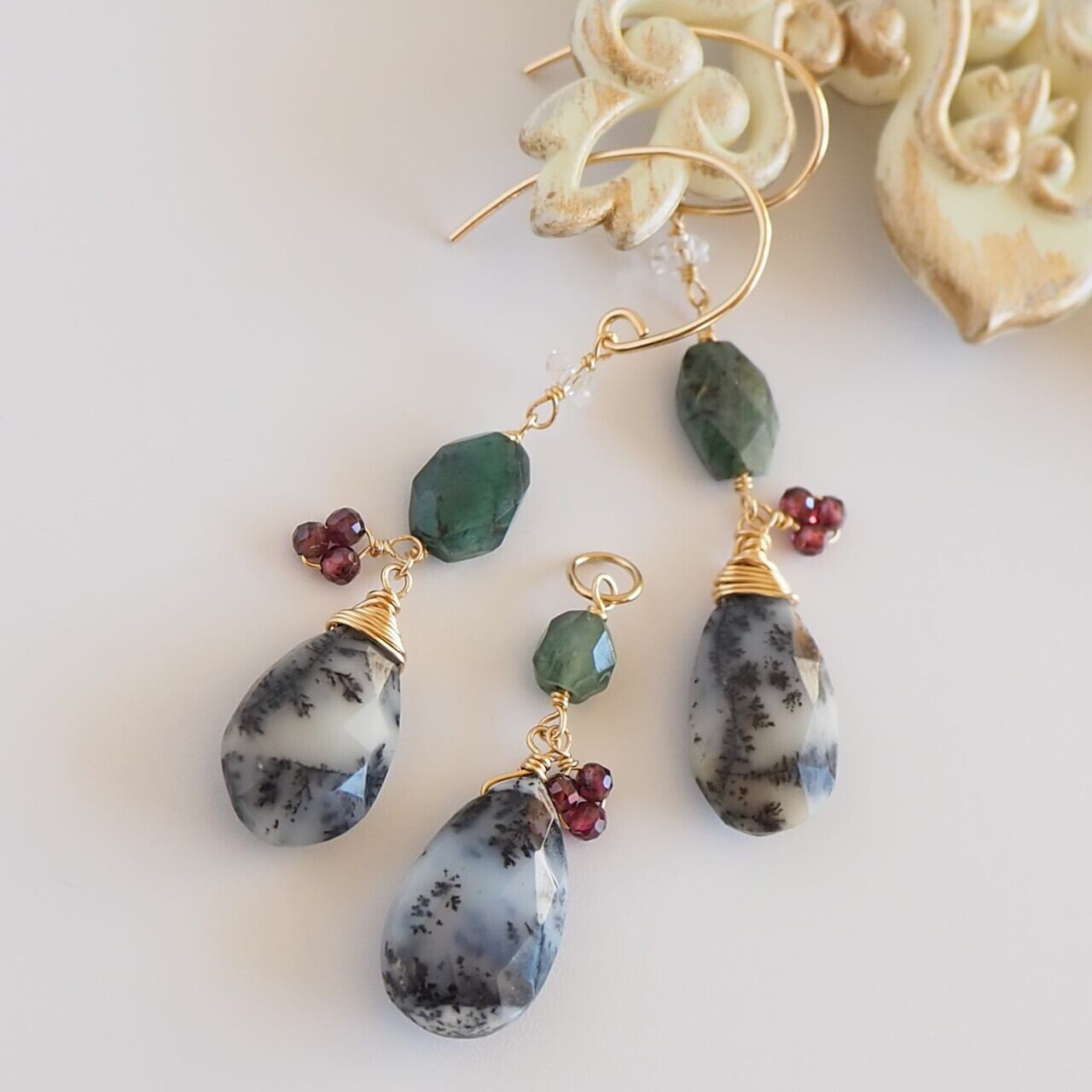 デンドライトオパールの枝葉の様な内包物が魅力的なピアスです。