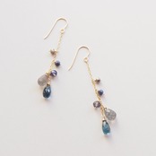宝石質のディープブルーカイヤナイトが美しく輝く、ブルー~グリーンのシックなチェーンピアスです。