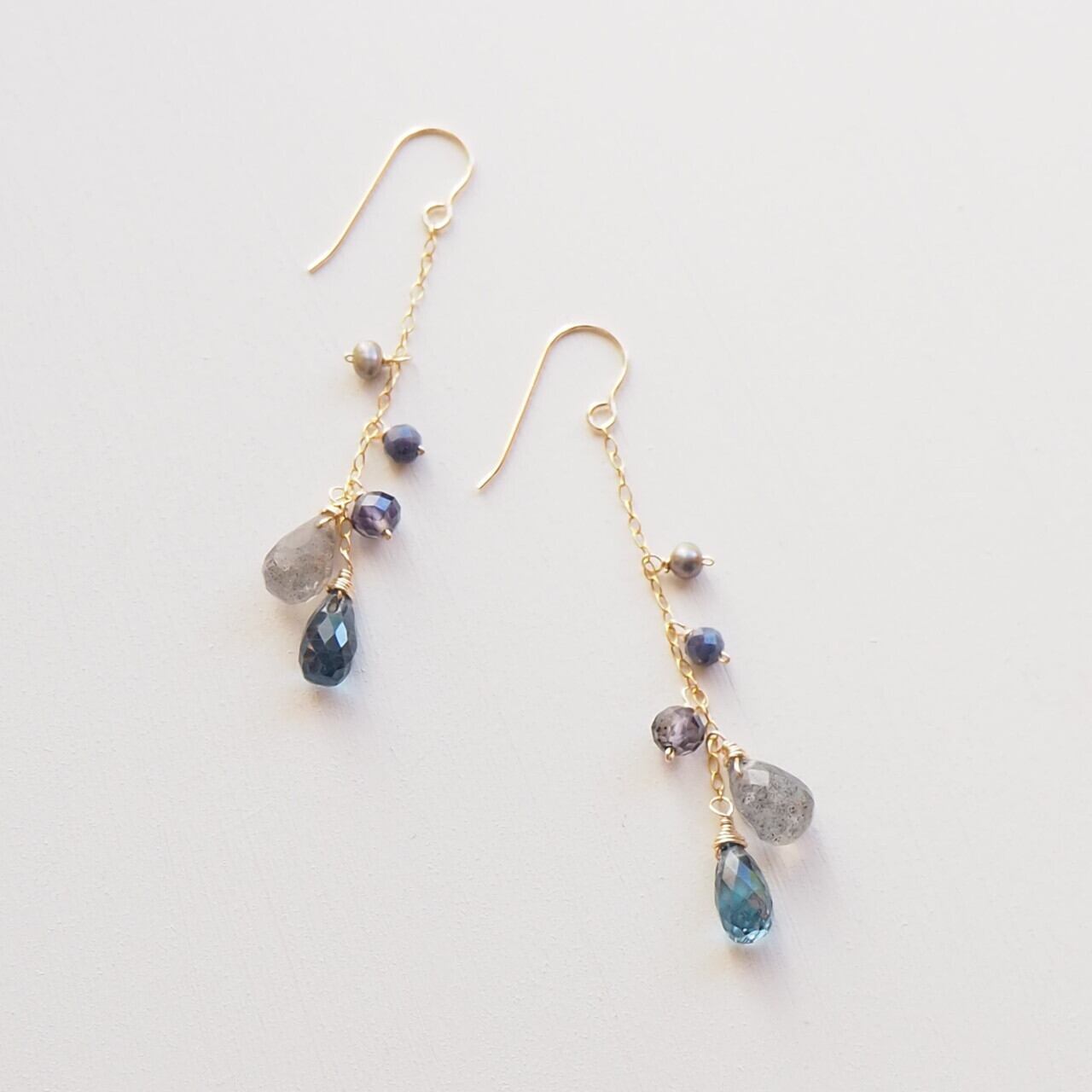 ラブラドライト、アイオライト、サファイア、グリーン系淡水パールを添えて・・・