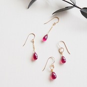 繊細なカットが美しいドロップカットのルビーに14KGFのツイストサークルをアクセントにプラス。