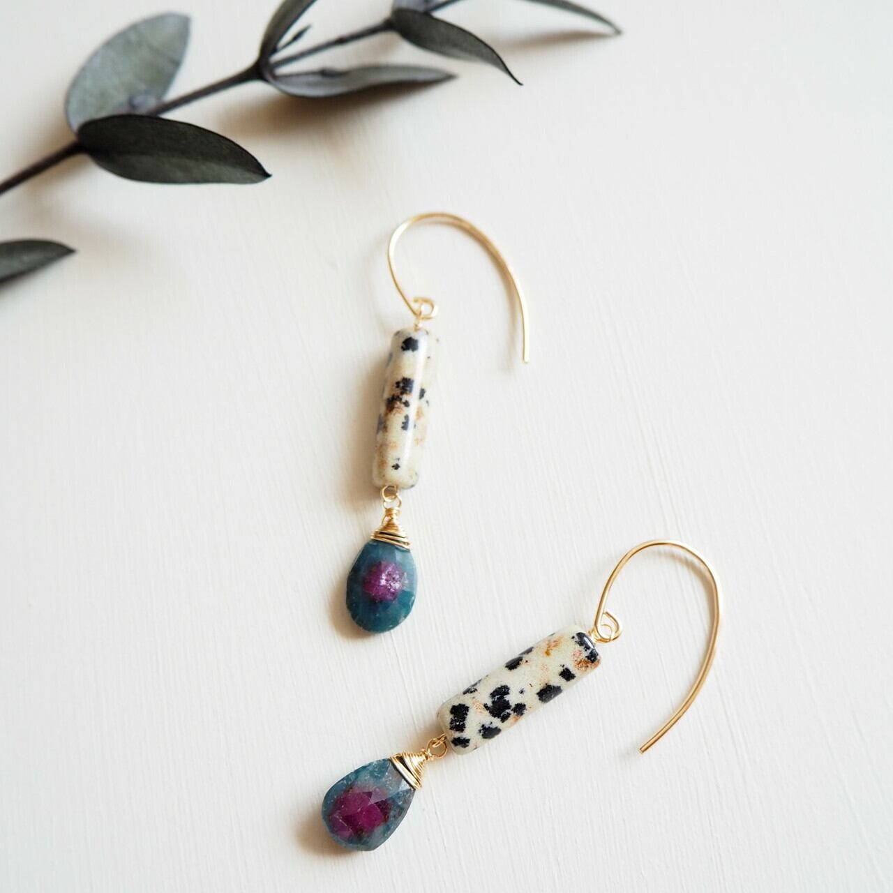 再販 ルビーインゾイサイト&ダルメシアンジャスパーフックピアス