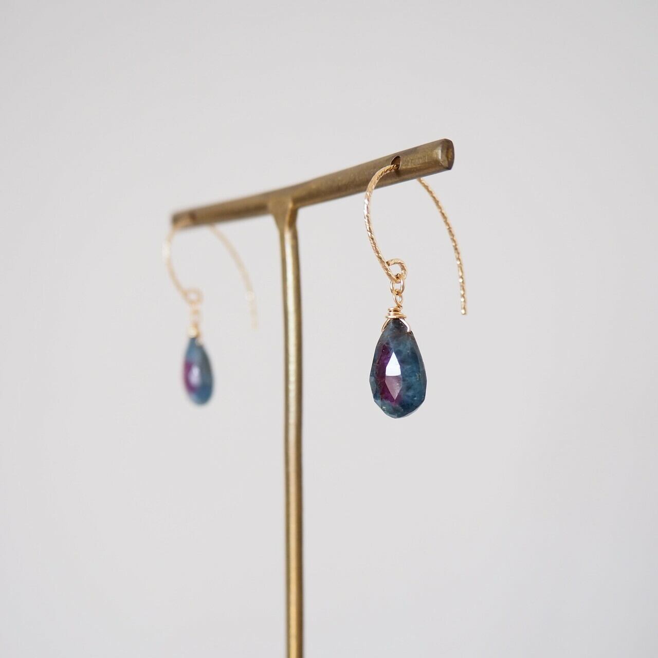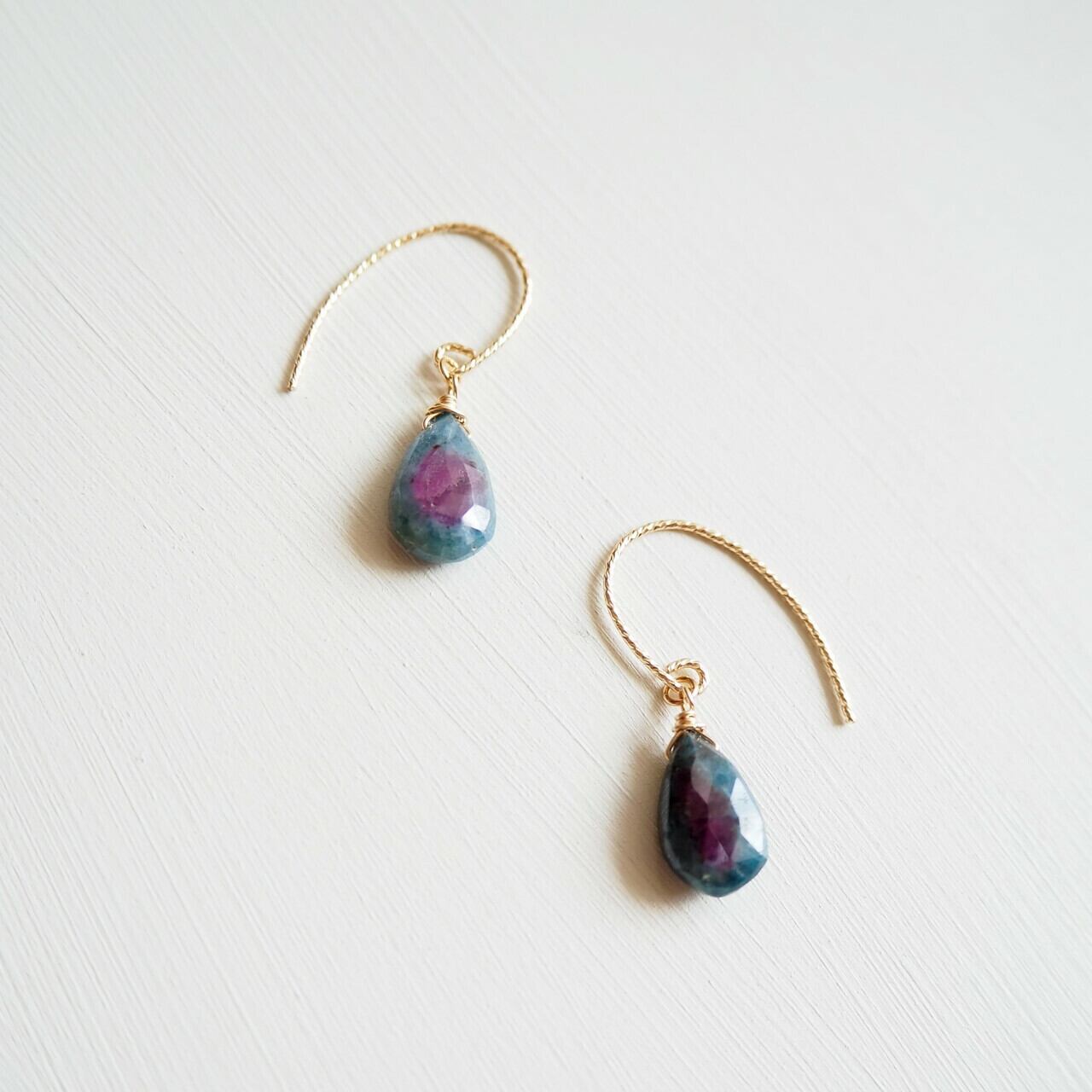 ルビーインゾイサイトのシンプルなひと粒ピアス。