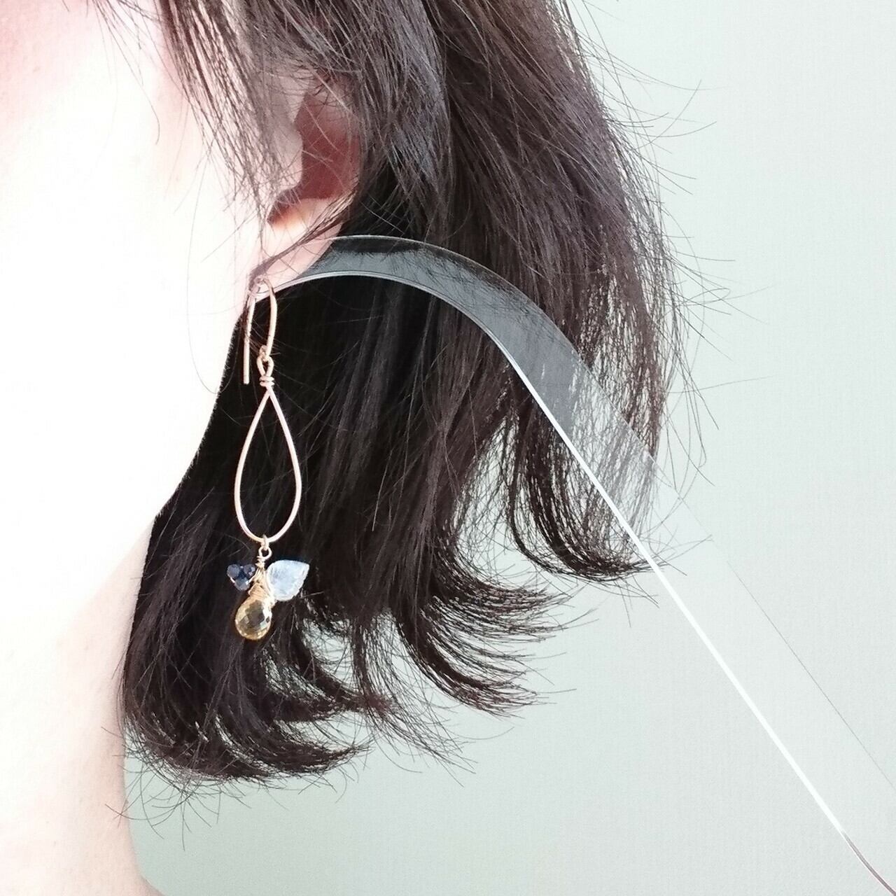 シトリン&サファイアの実ワイヤーピアス