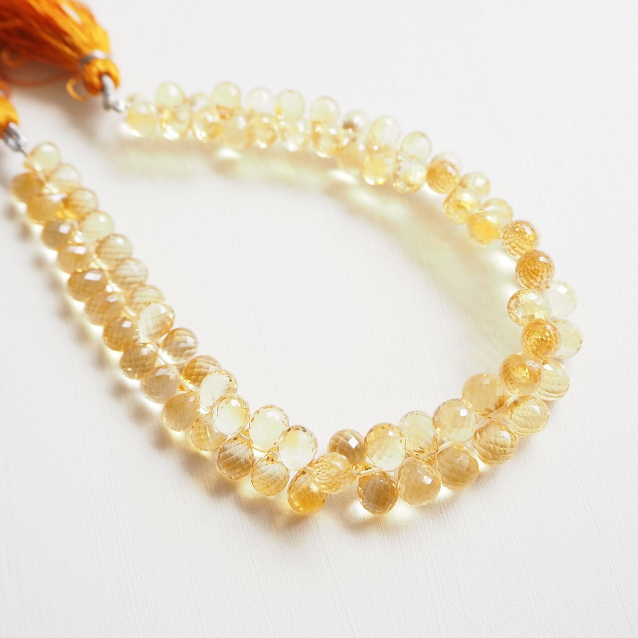 とても繊細で美しいドロップカットのシトリンとリーフ型のカービングが施されたレインボームーンストーンをボタニカルテイストのピアスに仕上げました。