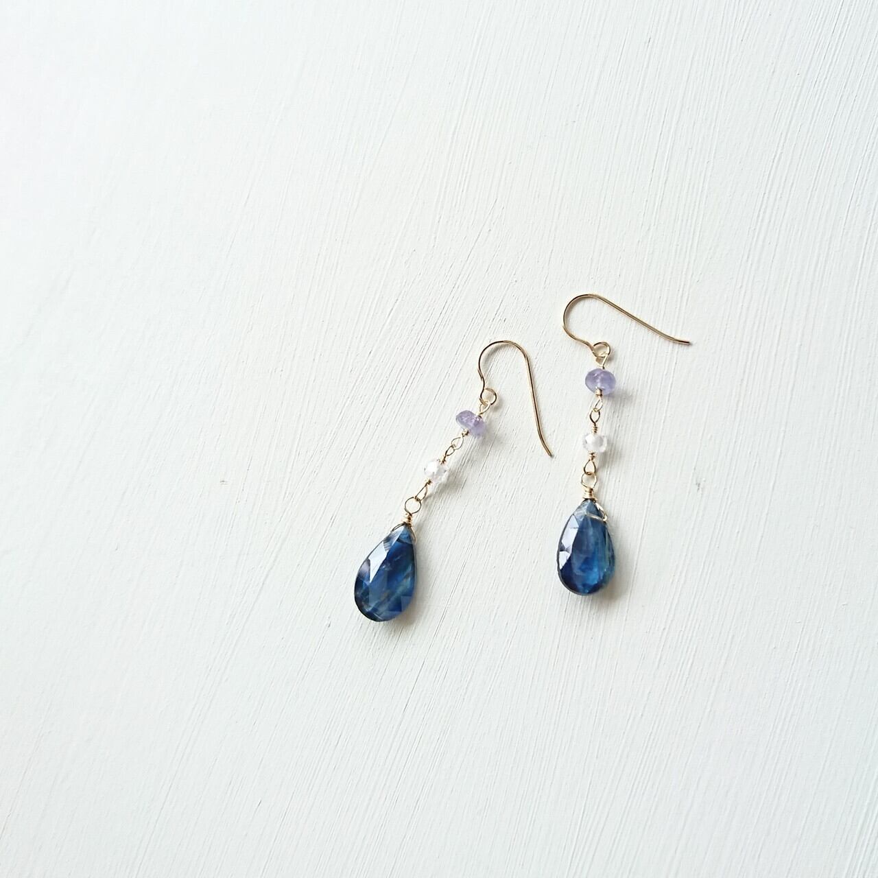 大きめサイズのブルーカイヤナイトにタンザナイトとジルコンを添えたシンプルなデザイン。