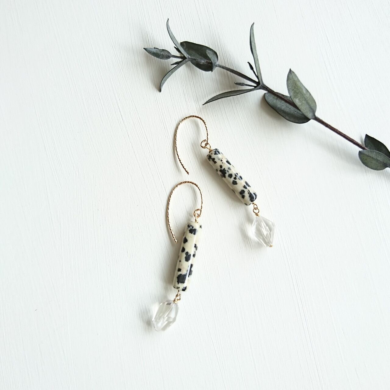 ダルメシアンジャスパー&クリスタルピアス