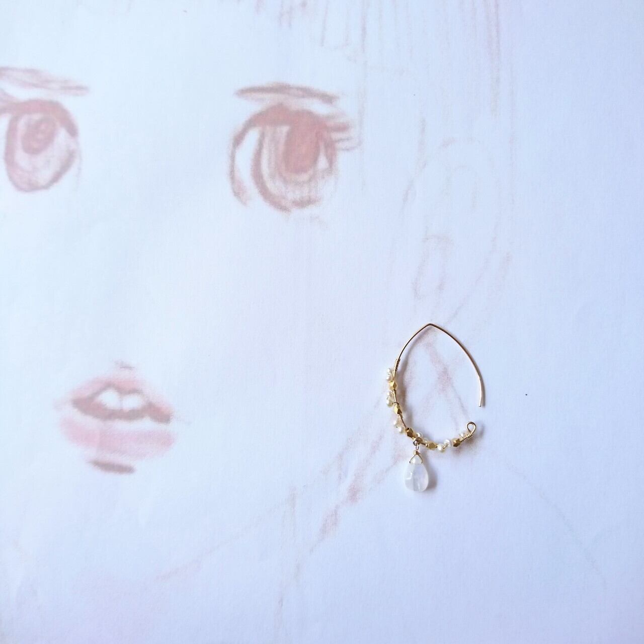 シラーが綺麗なペアシェイプカットのレインボームーンストーンが輝き、耳元を上品に飾ります。