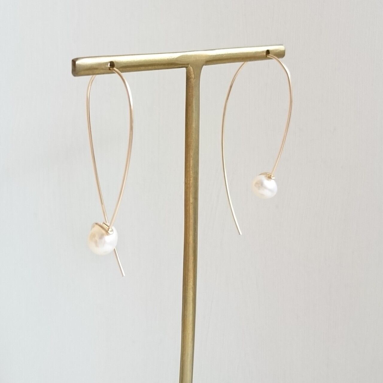 受注制作:シンプルワイヤーホワイトパールピアス