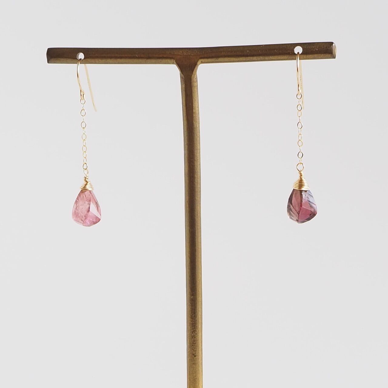 ツイストカットのトルマリンはボルドー系とピンク系のアシンメトリー配色。