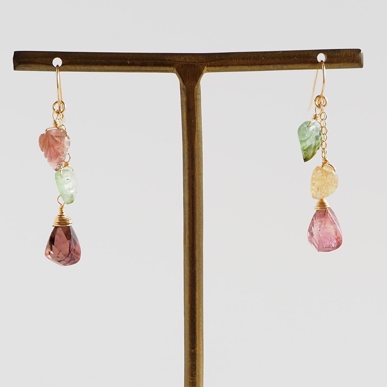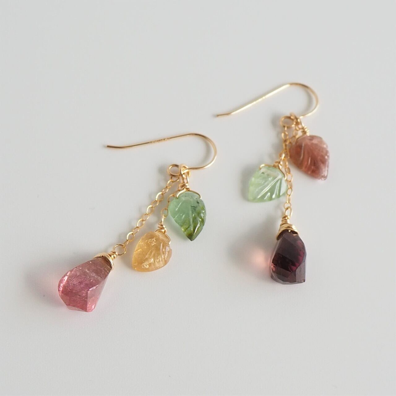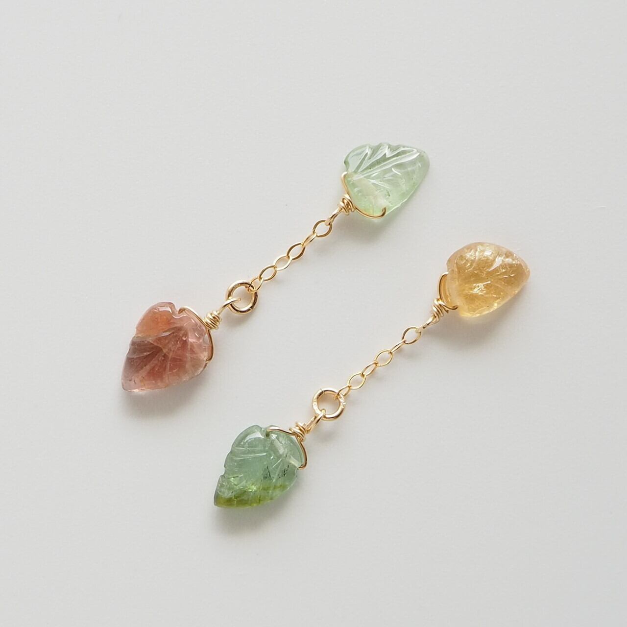 トルマリン4面ツイスト・リーフチャーム2WAYピアス
