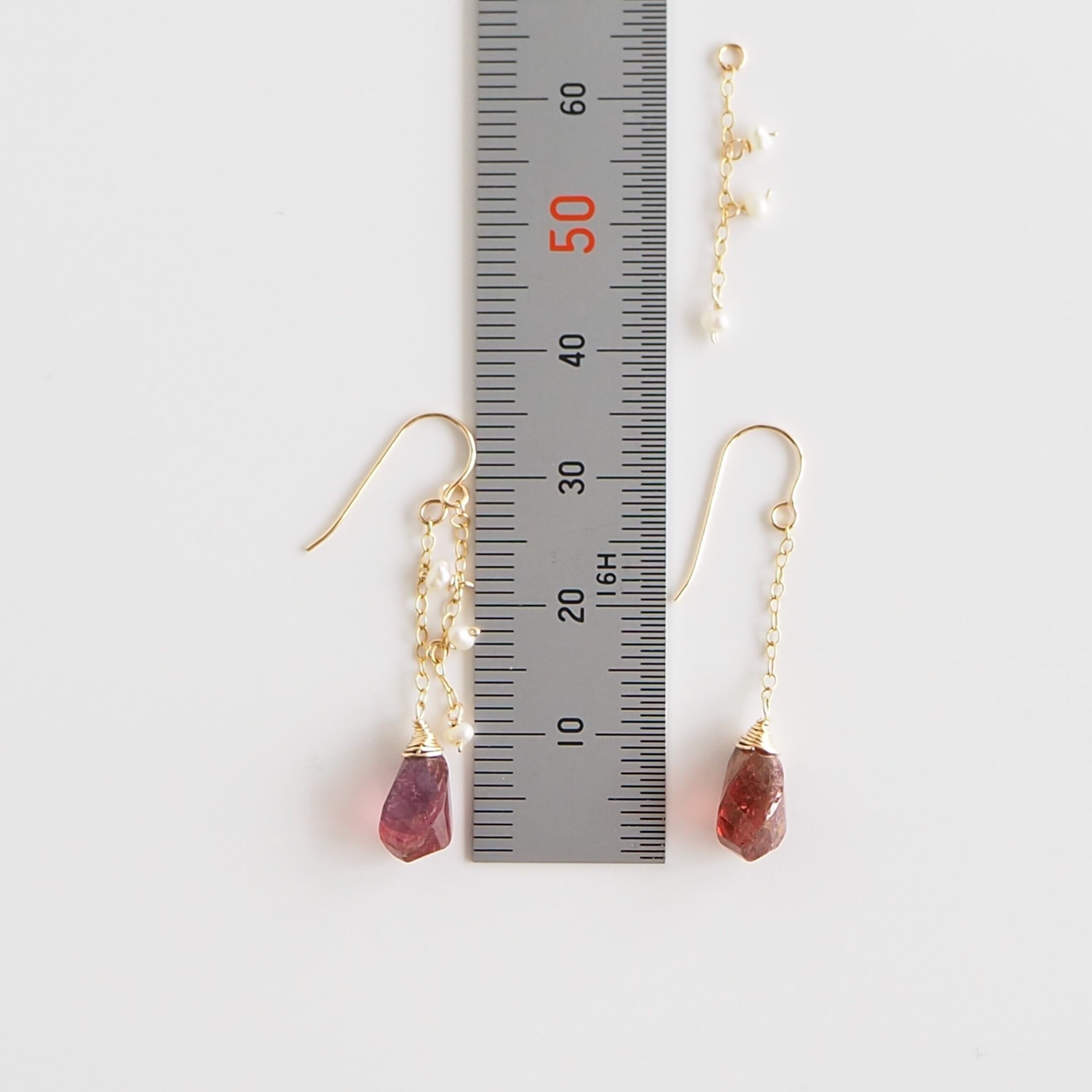 縦10㎜とサイズ感もあり、透明感のある上品なピンクトルマリンのひと粒チェーンピアスに、取り外し可能な淡水パールのチャームを添えました。