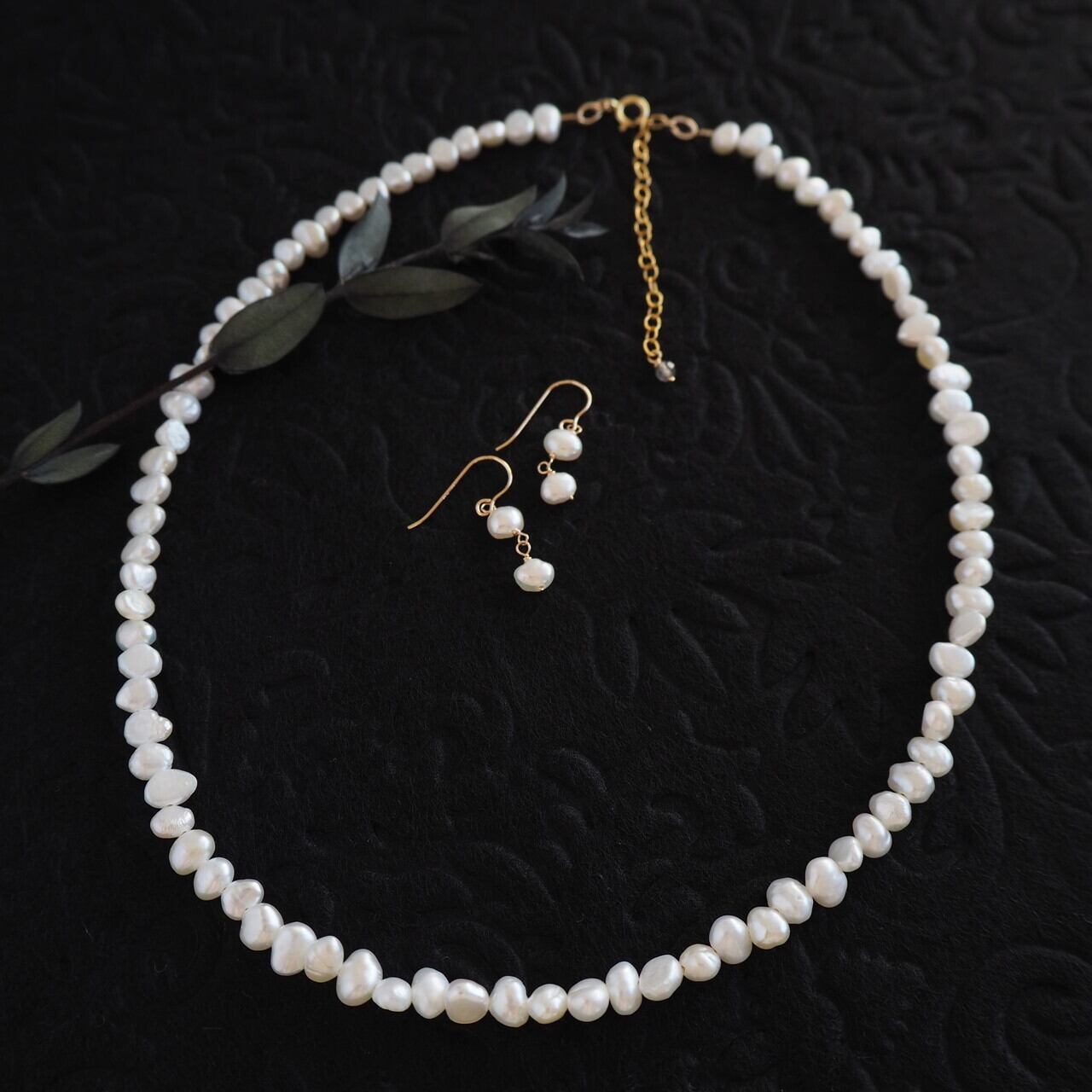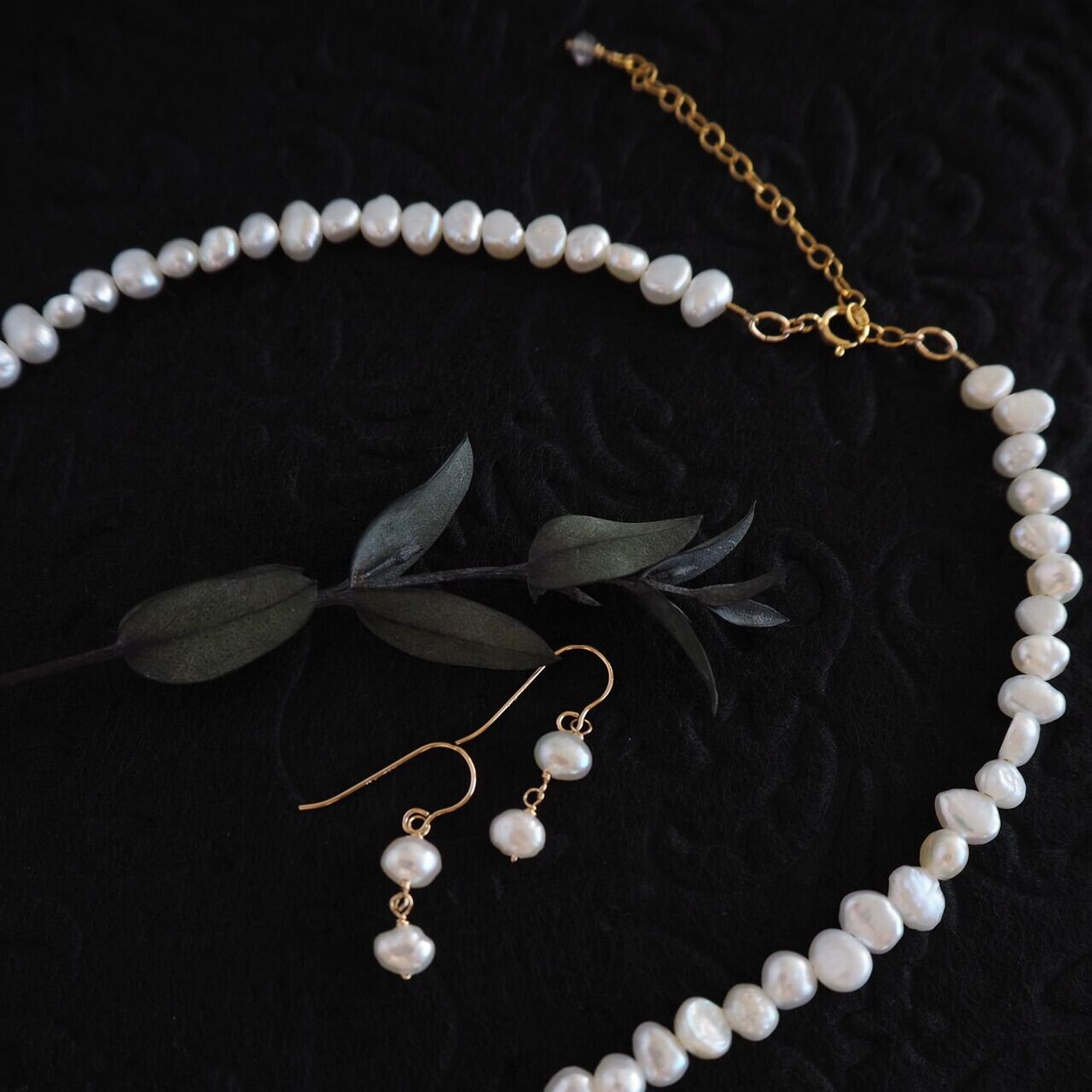 片面がフラットな淡水バロックパールはカジュアルな雰囲気もあり、デイリーにも使いやすいアイテムです。