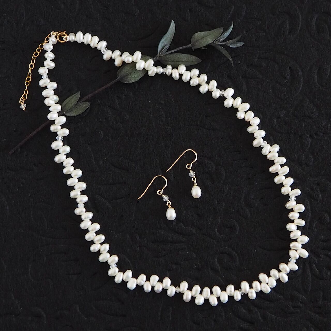 横穴で動きのある淡水クレオパトラパールのネックレスとお揃いのピアスのセットです。