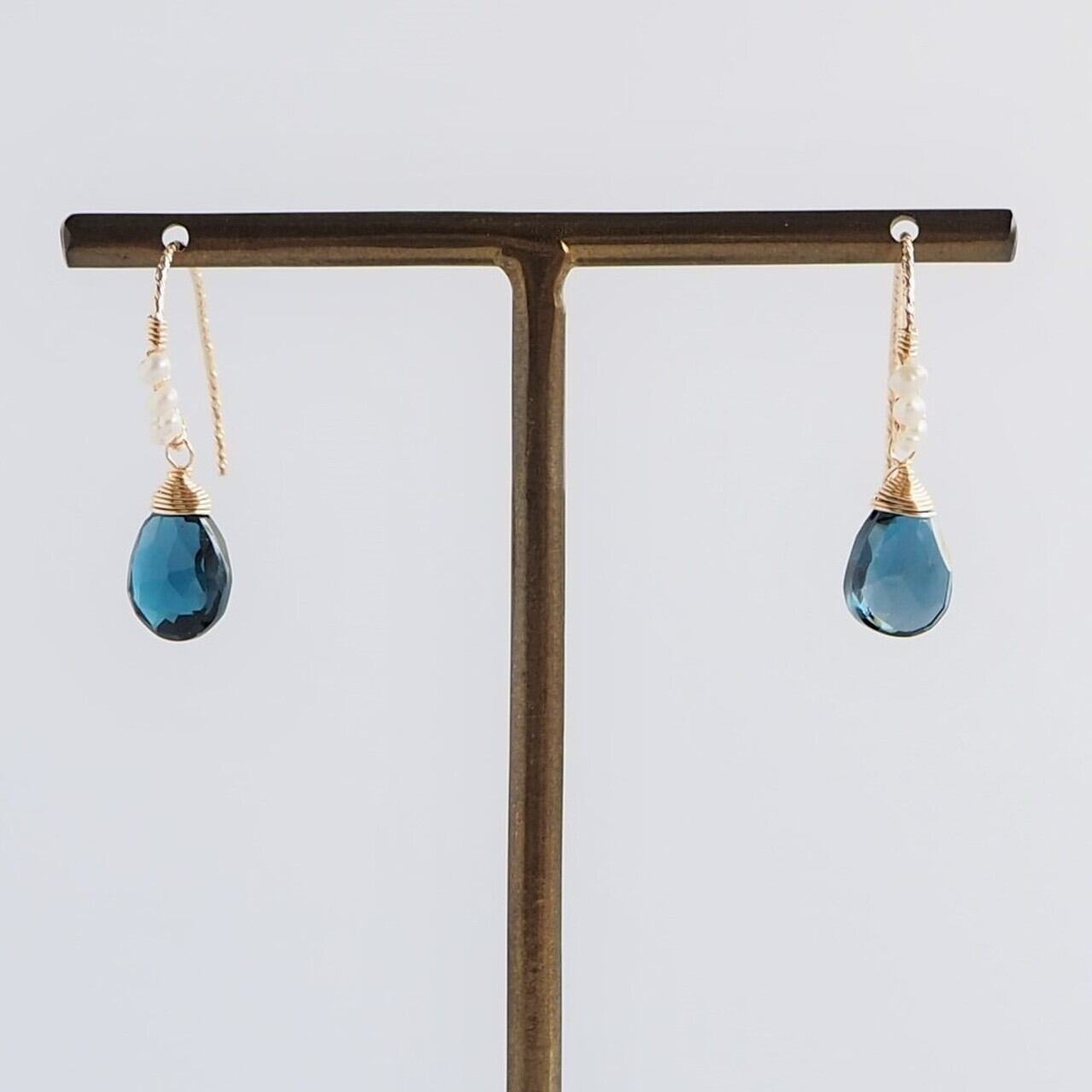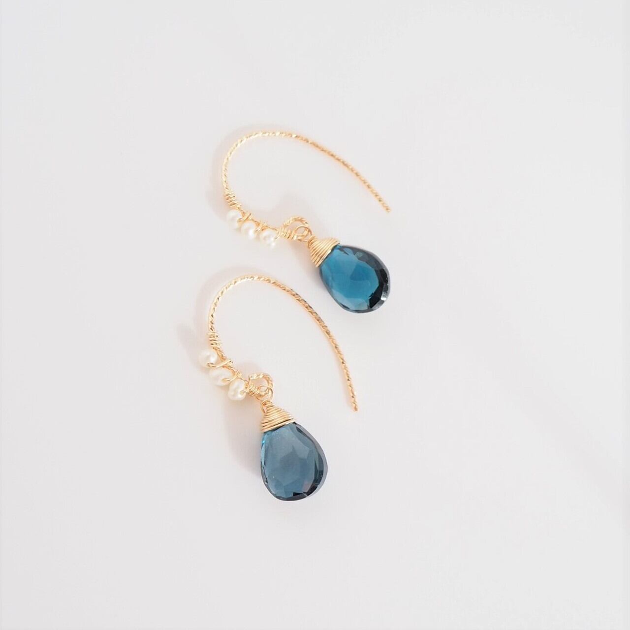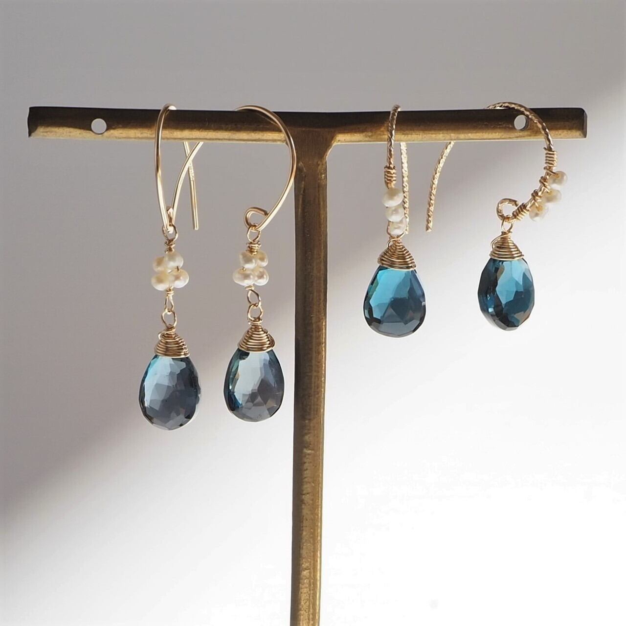 鑑定済みのハイグレードな大粒ロンドンブルートパーズを使用した贅沢なピアスです。