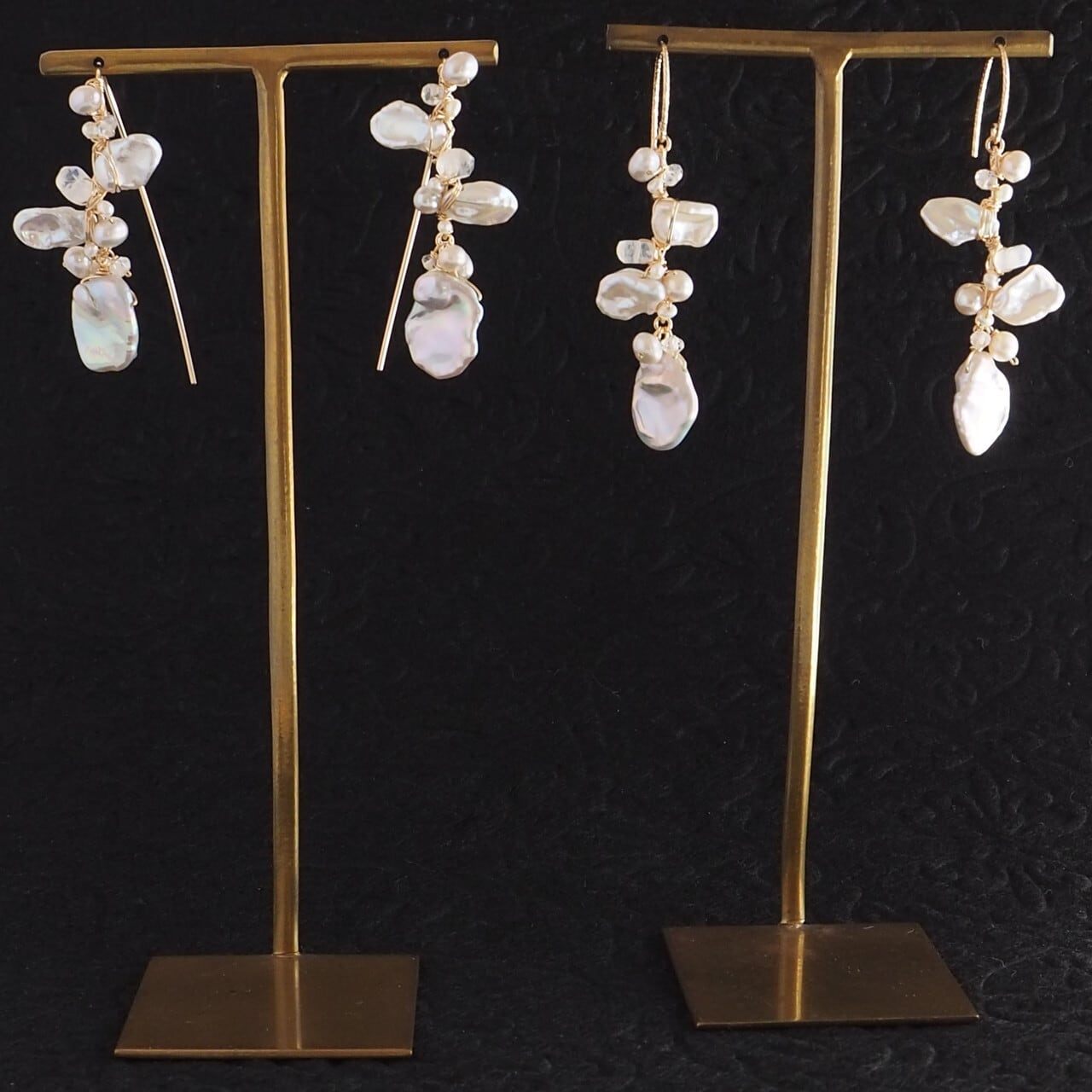 オリジナルフックタイプもございますが、こちらはグリッターのフックで切り替えて、華やかさと揺れ感をプラスしました。