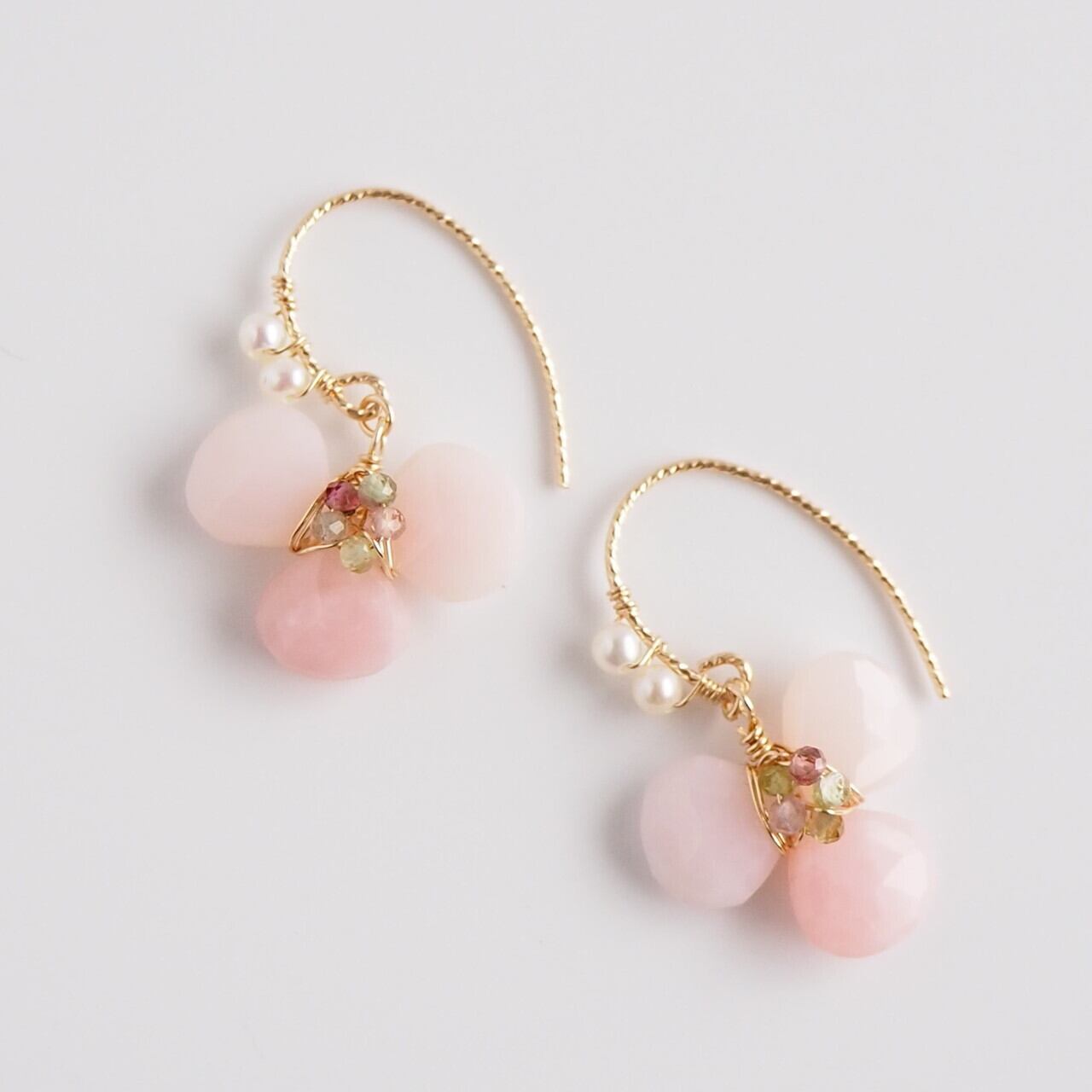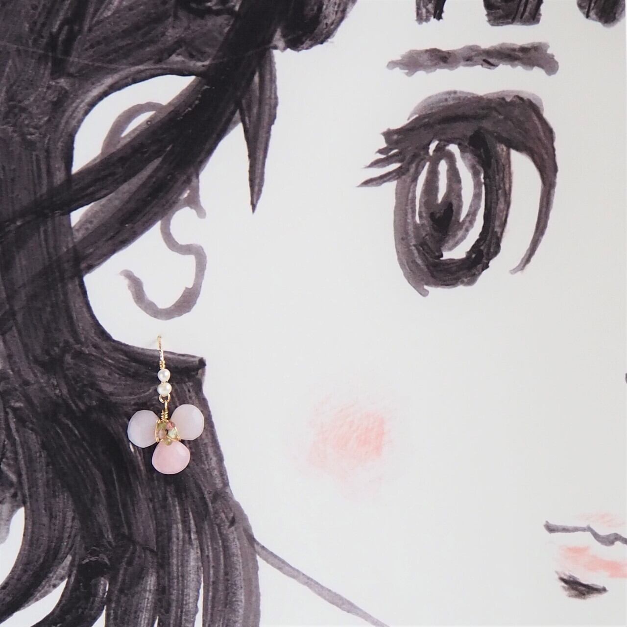 ピンクオパールのお花が可愛いらしい春にぴったりのピアスです。