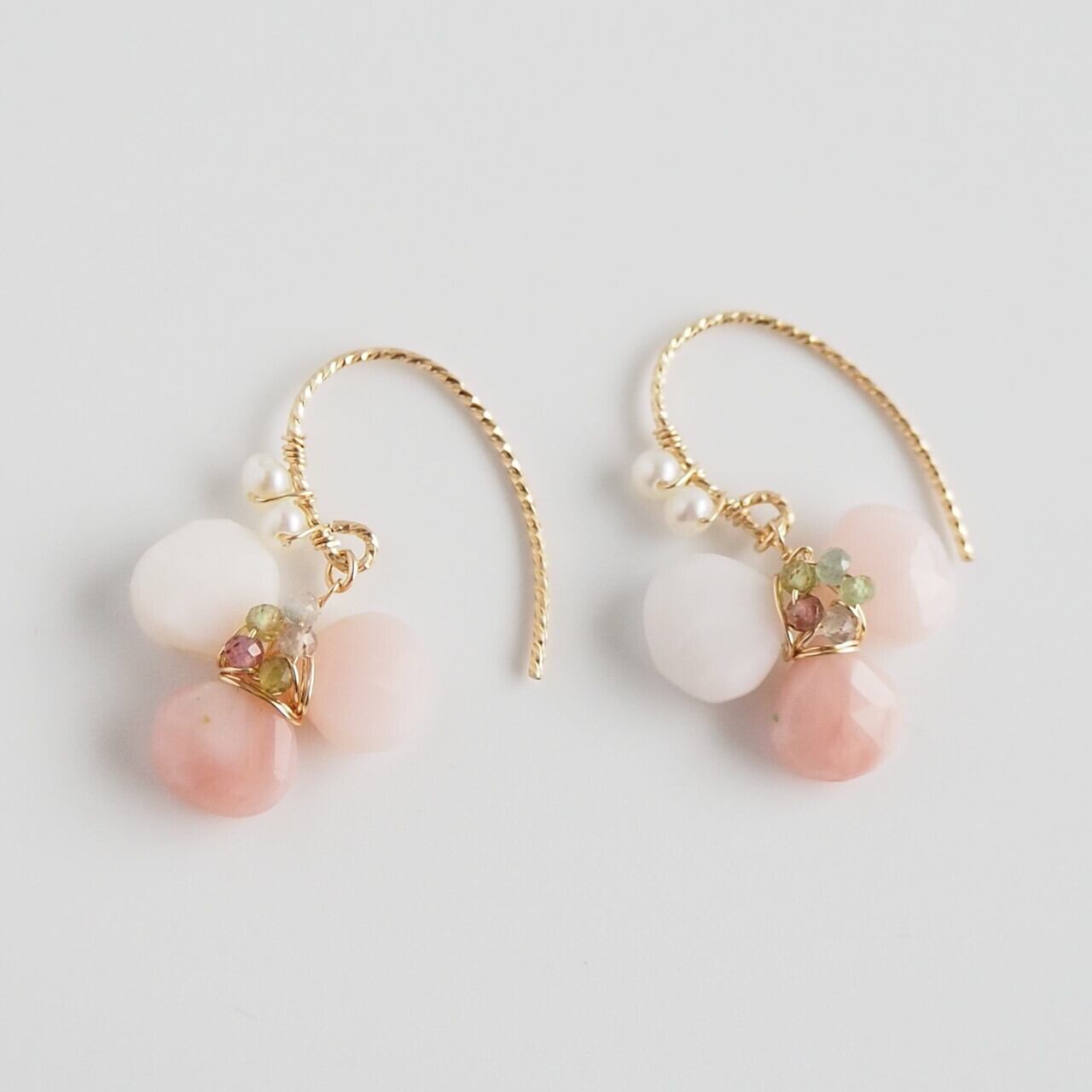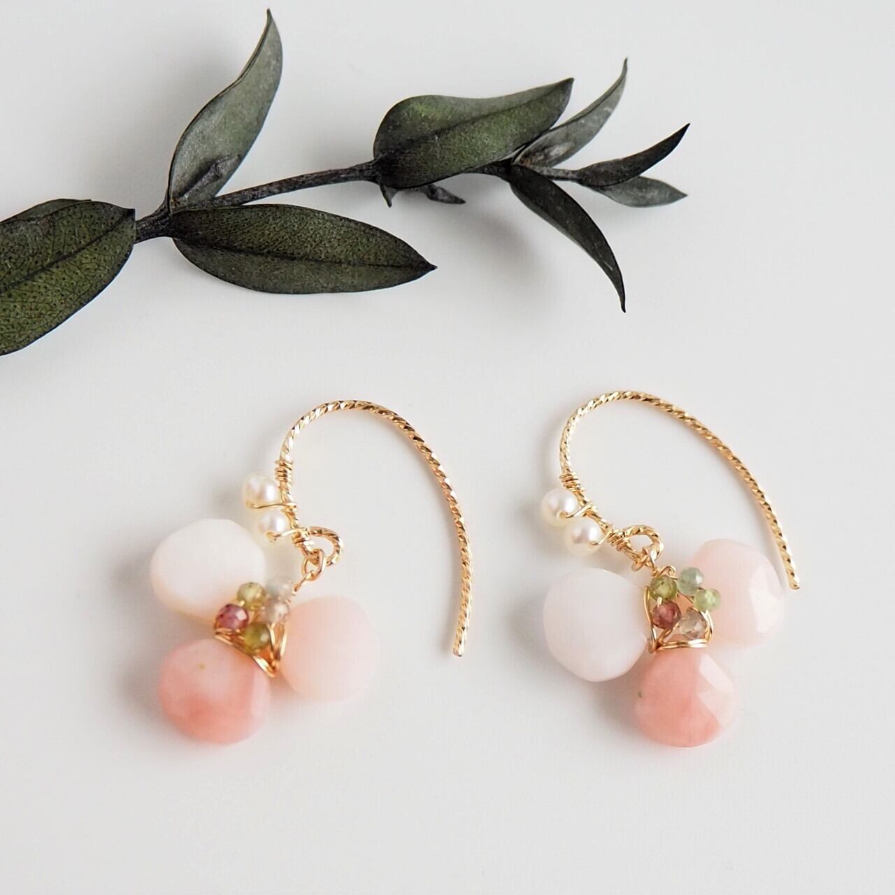 ピンクオパールのお花が可愛いらしい春にぴったりのピアスです。
