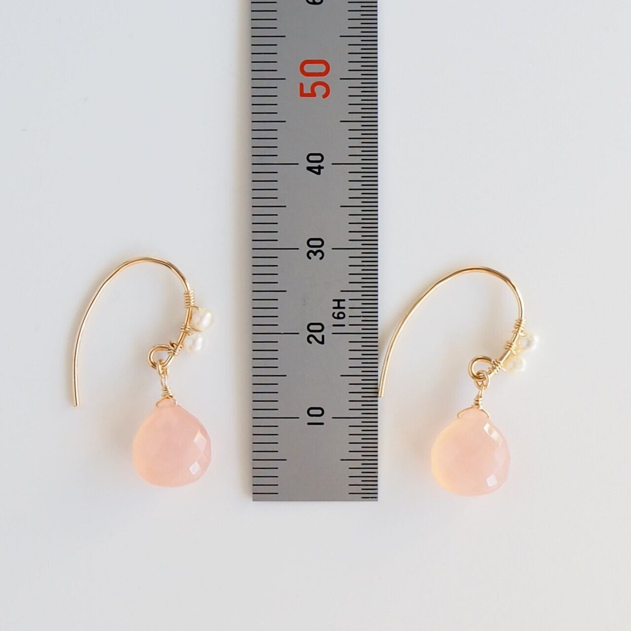 優しいパステルピンクの艶々ぷっくりなカルセドニーに、淡水パールを添えてスウィートなテイストに仕上げました。