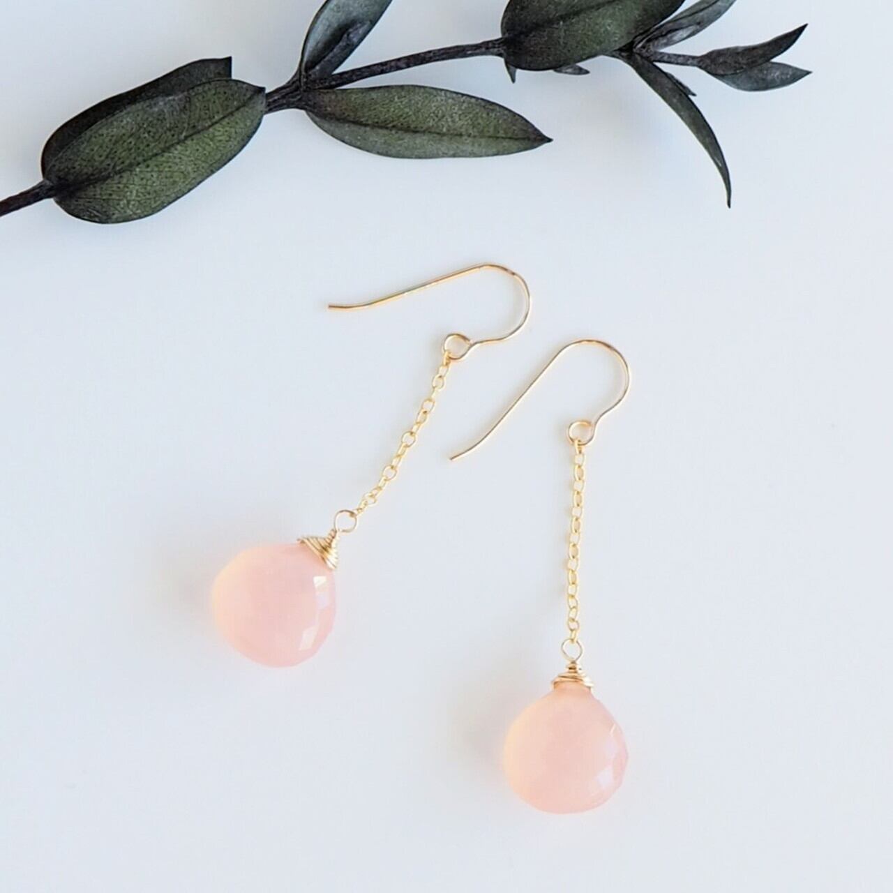 ピンクカルセドニーのチェーンピアス