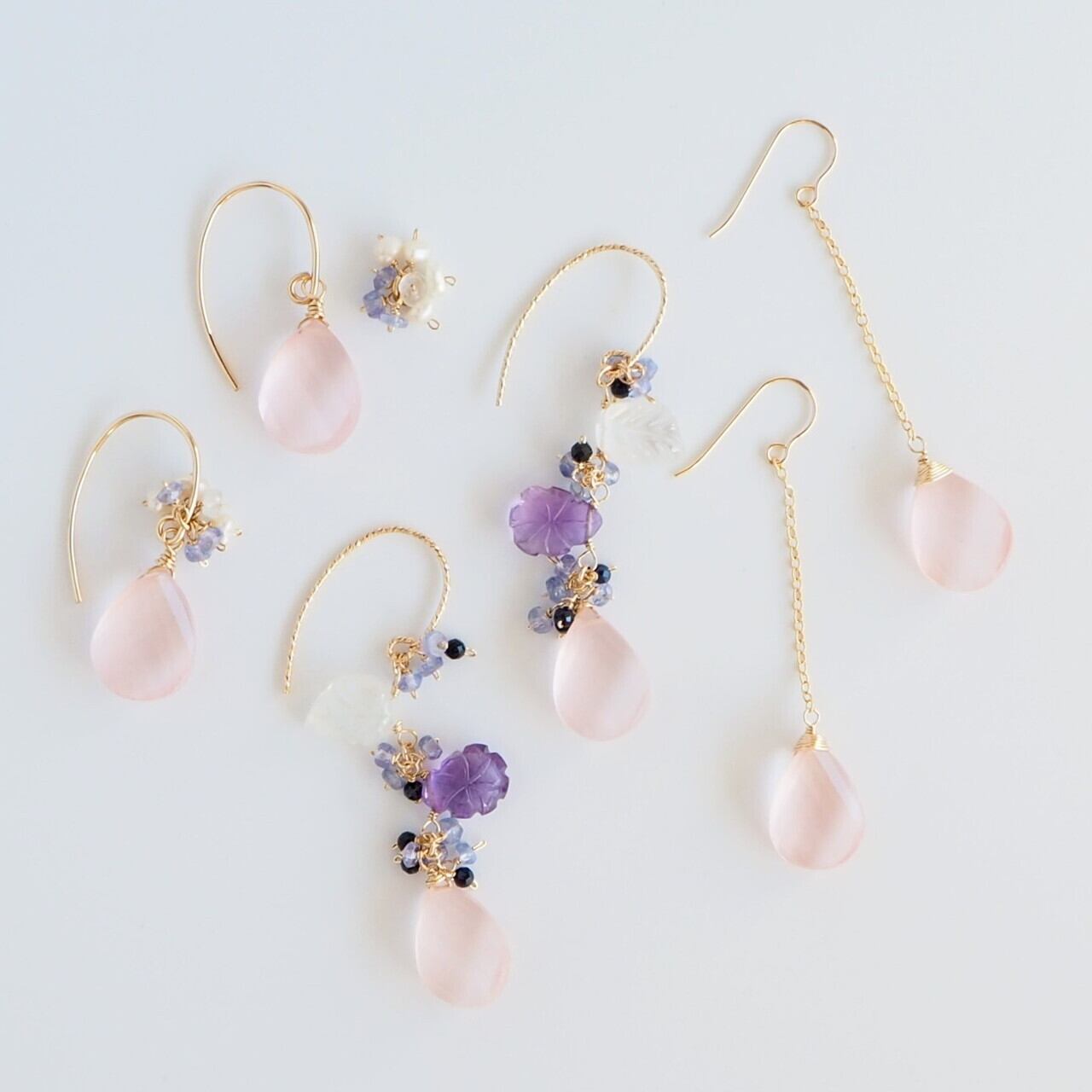 ツイストしたペアシェイプの繊細なカットが美しいローズクォーツ。