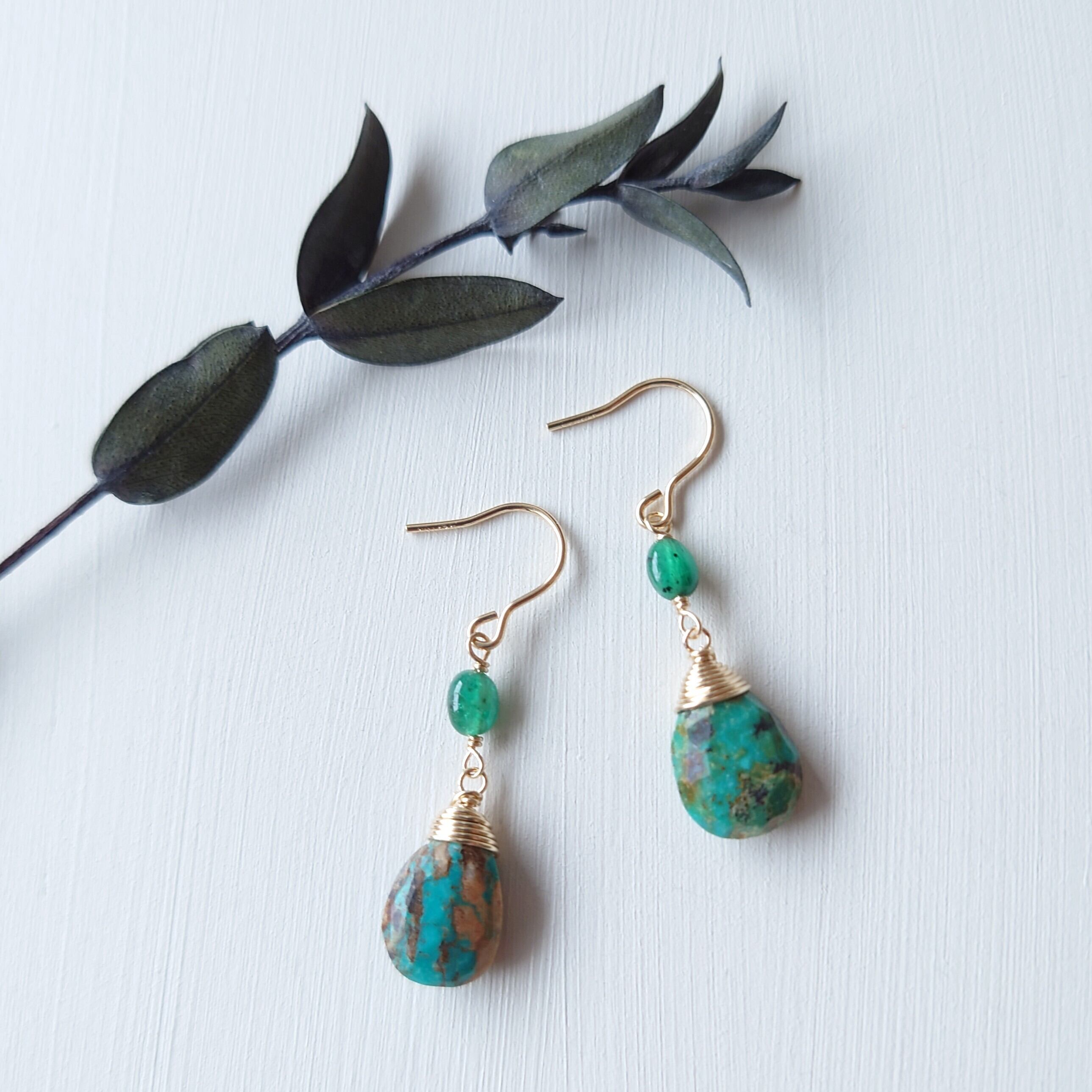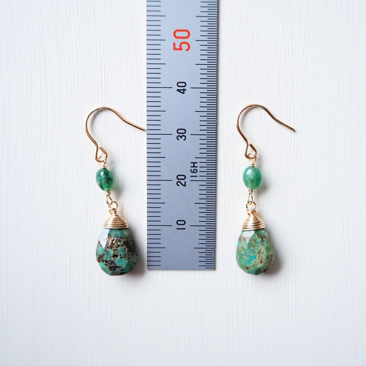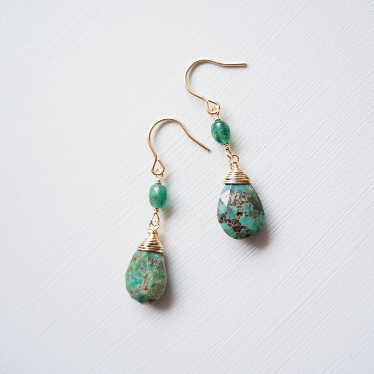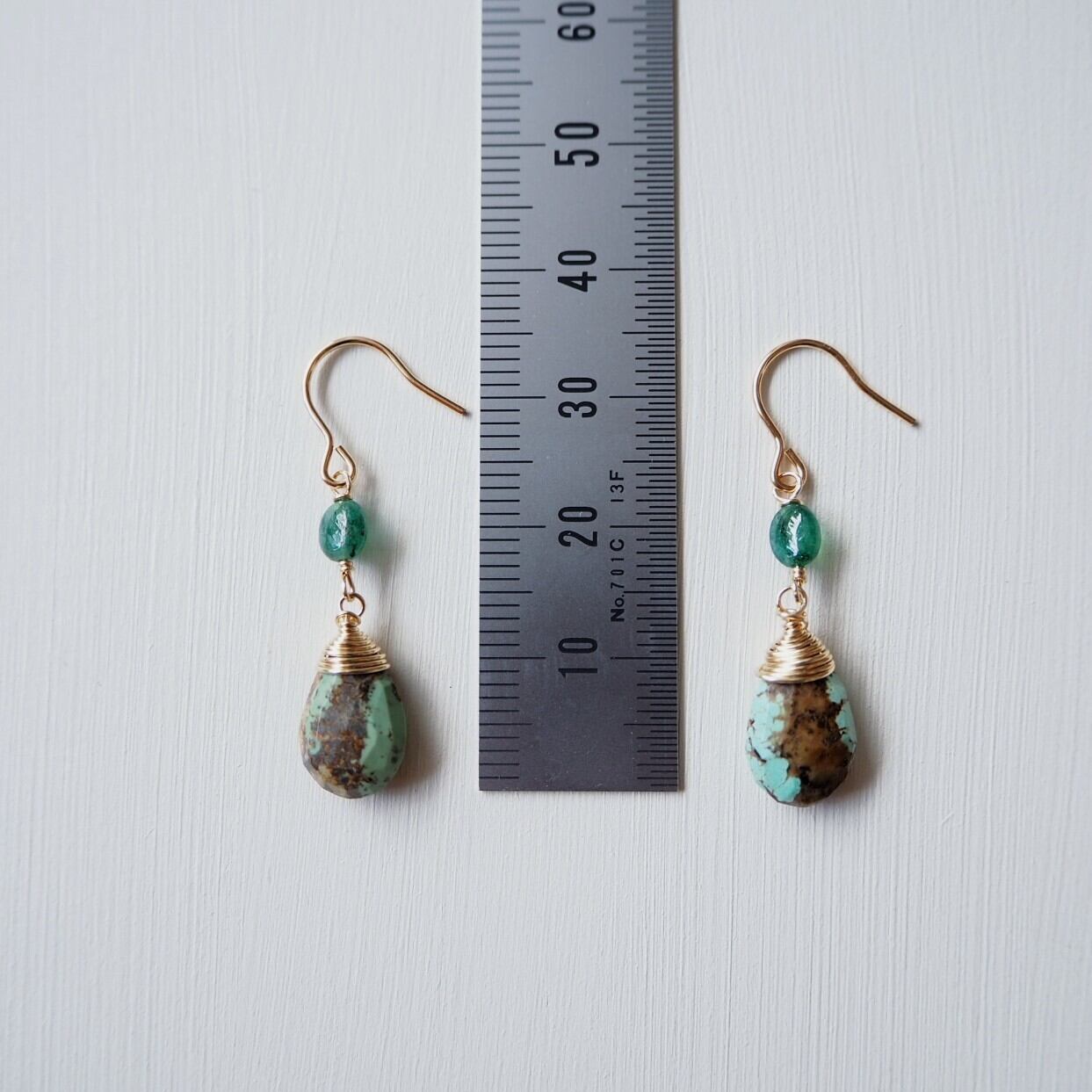 カジュアルなイメージのターコイズですが、エメラルドでぐっと上品で大人なピアスに仕上がりました。