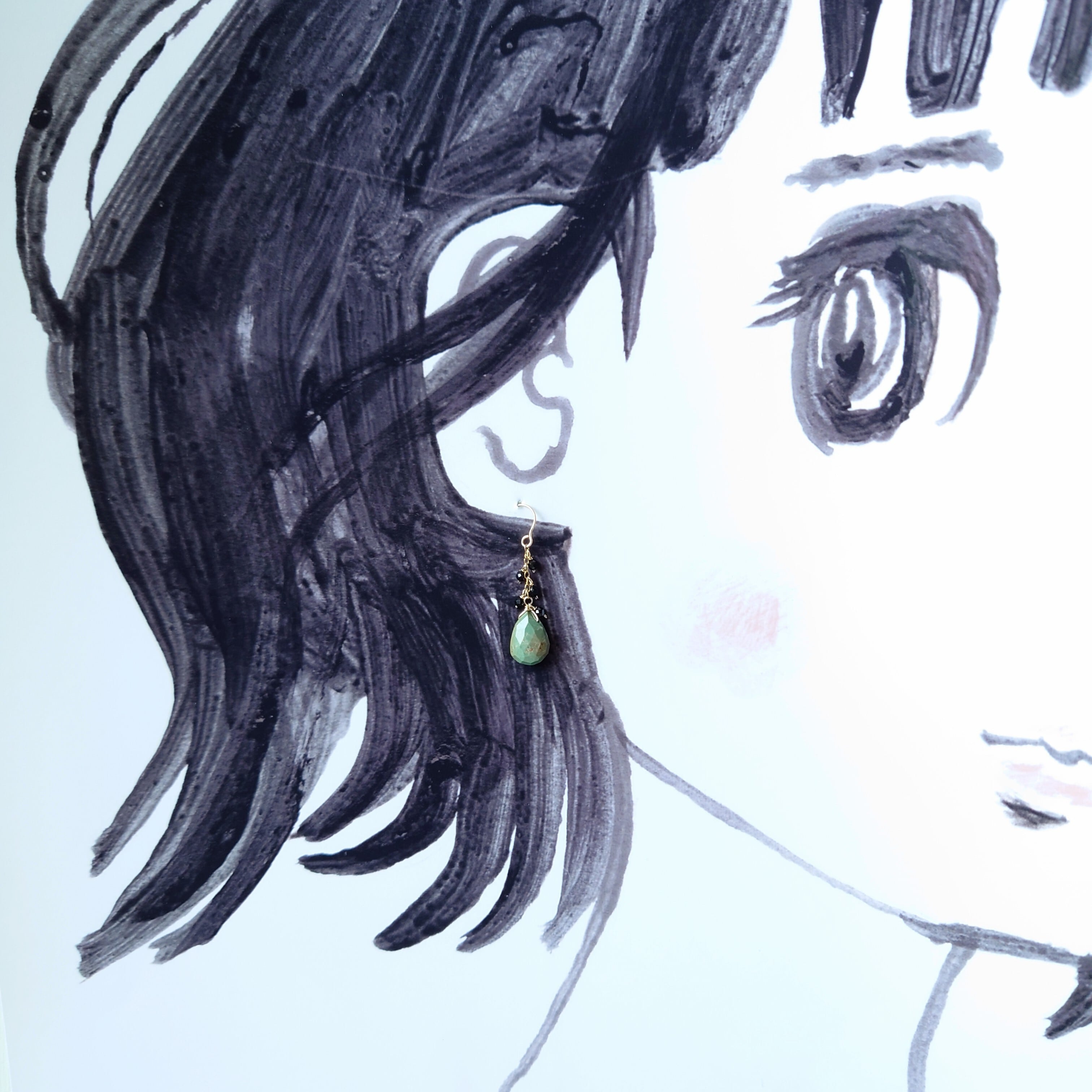 こちらは華奢な極細フックピアスを使用しておりますので、ピアスホールが小さい方も安心してお使い頂けます。対応のシリコンキャッチもお付けしております。