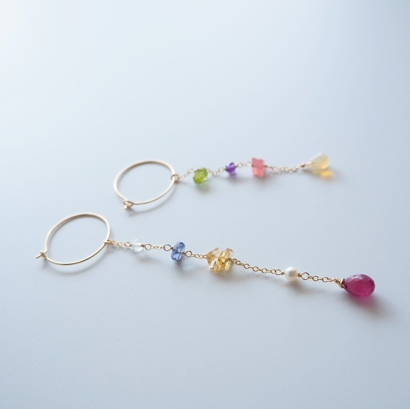フープピアス、アシンメトリーのデザインで遊び心のあるデザインで仕上げました。