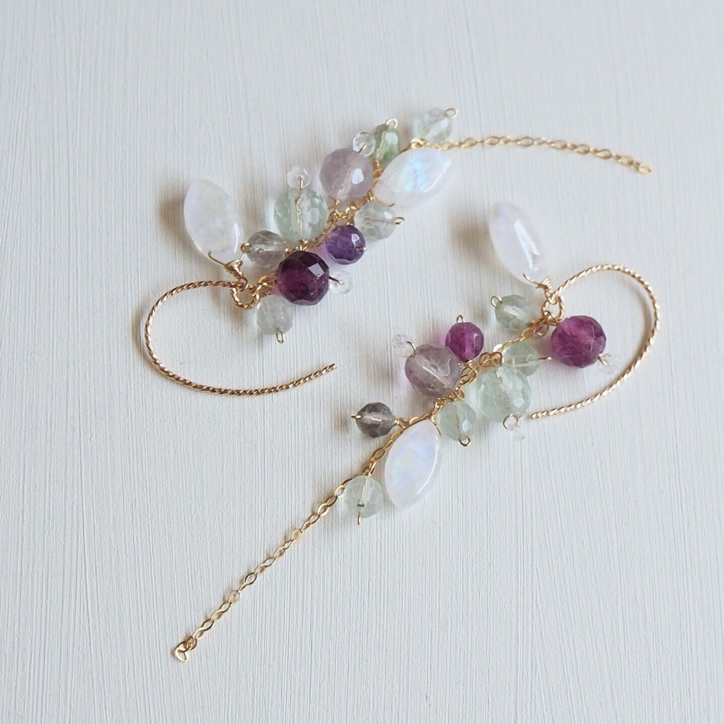 レインボームーンストーン&フローライトのボリュームピアス(パープルmix)