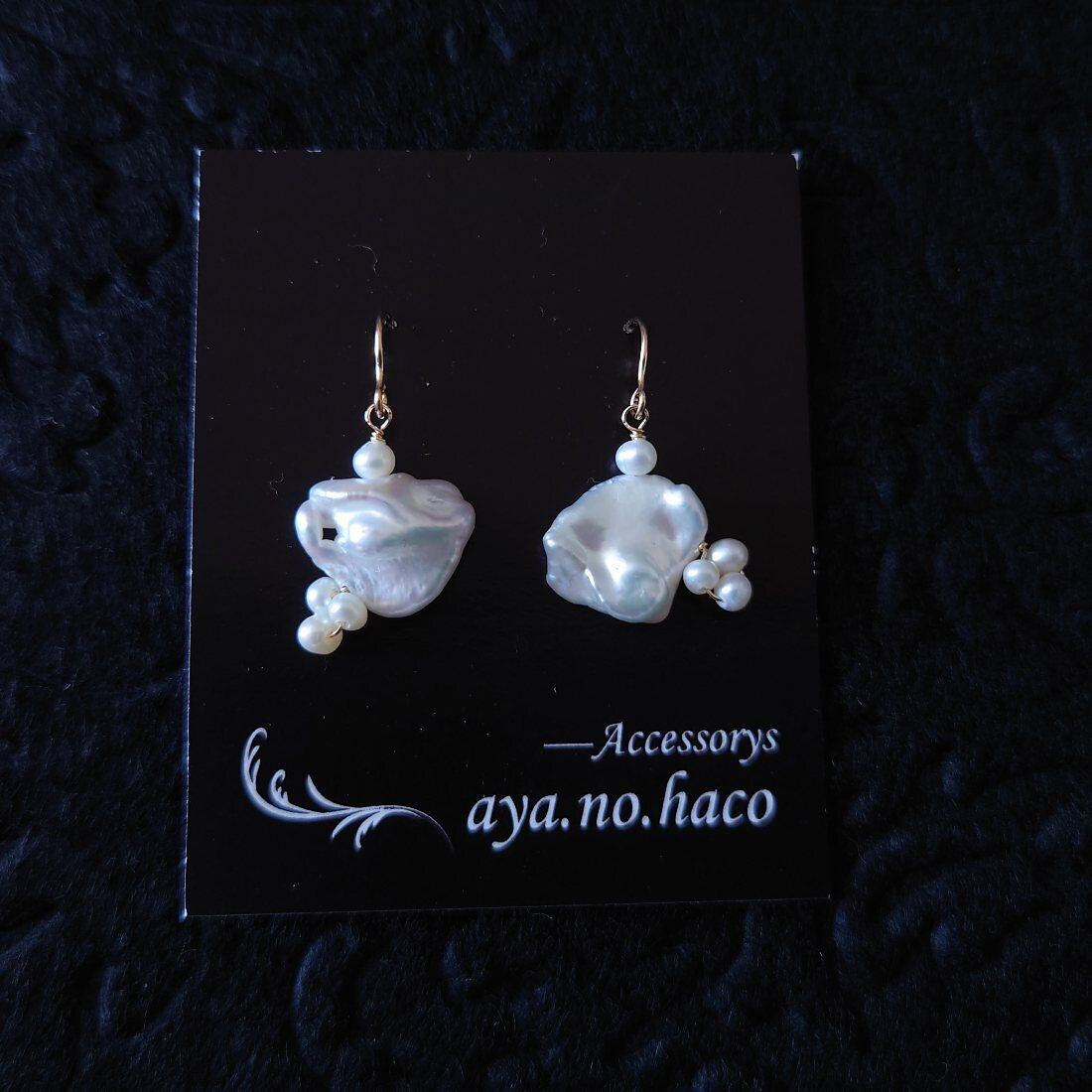 小粒の淡水パールが、シンプルな花びらパールを可愛らしく彩ります。
