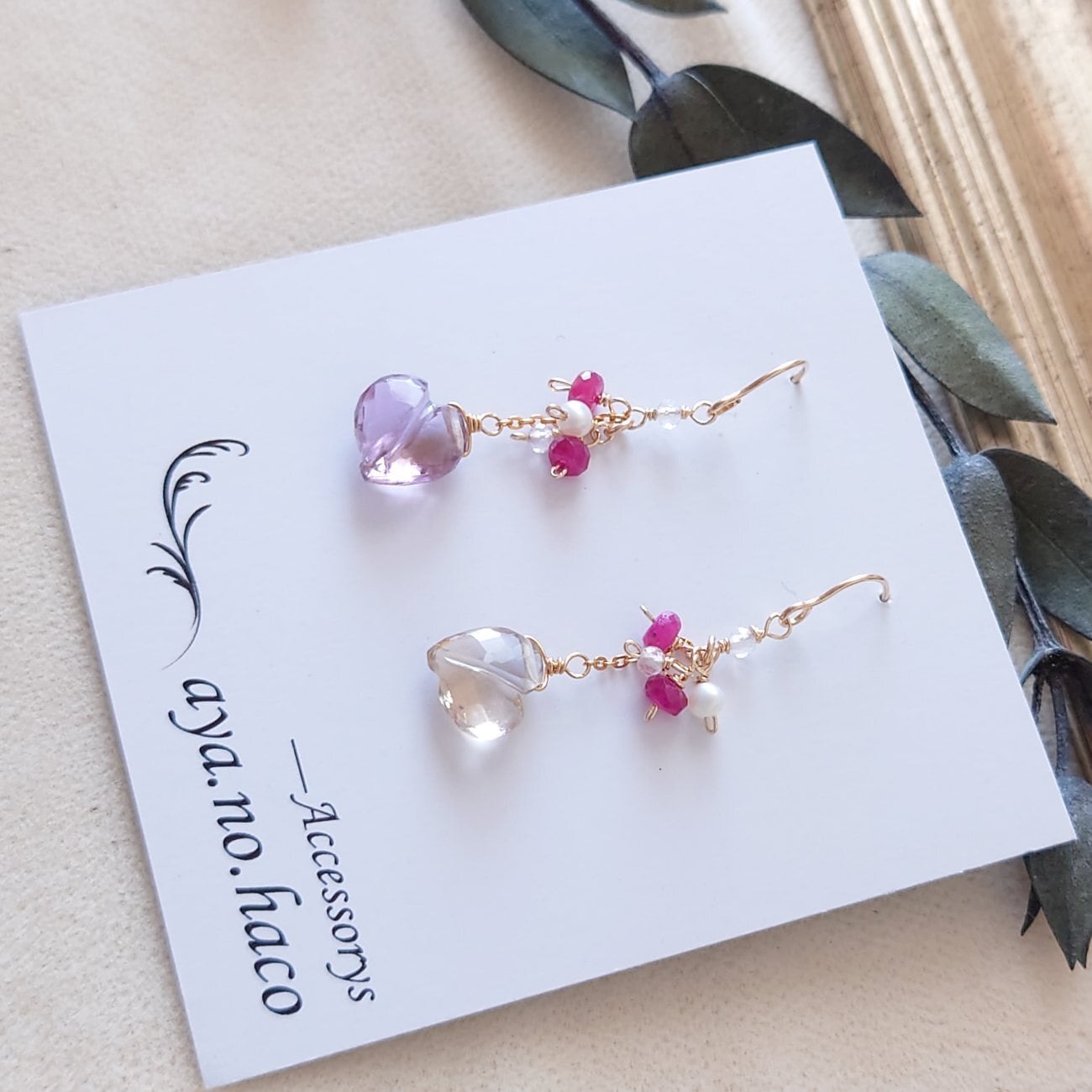 美しさと可愛らしさが融合した、ルビー&アメトリンのピアス。